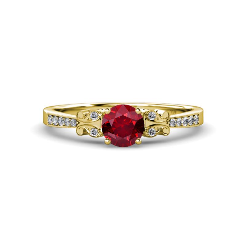 Ruby and Diamond 1.09 ctw Butterfly Womens Engagement Ring with Milgrain Work 18K Yellow Gold More Details ...