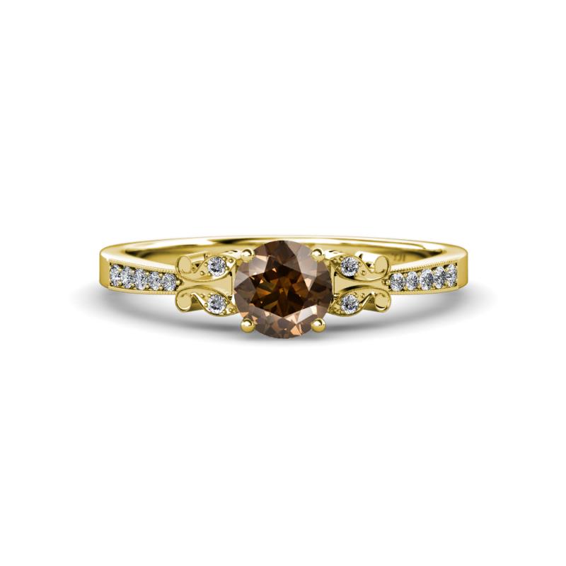 Smoky Quartz and Diamond 1.14 ctw Butterfly Womens Engagement Ring with Milgrain Work 14K Yellow Gold More Details ...