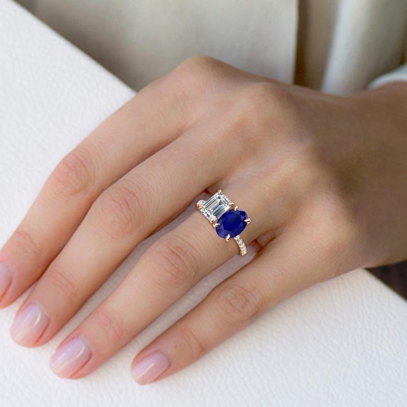 IGI Certified Emerald Cut Lab Grown Diamond and Oval Blue Sapphire 2.82 ctw Eight Prong Women 2 Stone Duo Engagement Ring 14K Rose Gold More Details ...
