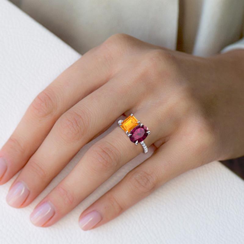 Emerald Cut Citrine and Oval Rhodolite Garnet 2.87 ctw Eight Prong Women 2 Stone Duo Engagement Ring 14K White Gold More Details ...