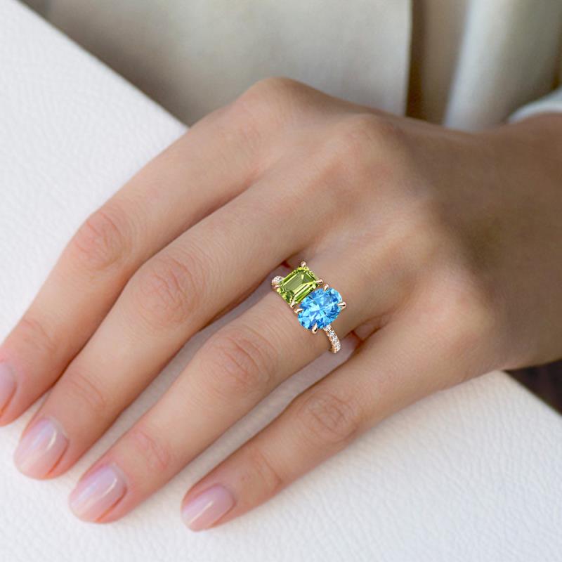 Emerald Cut Peridot and Oval Blue Topaz 3.02 ctw Eight Prong Women 2 Stone Duo Engagement Ring 18K Rose Gold More Details ...