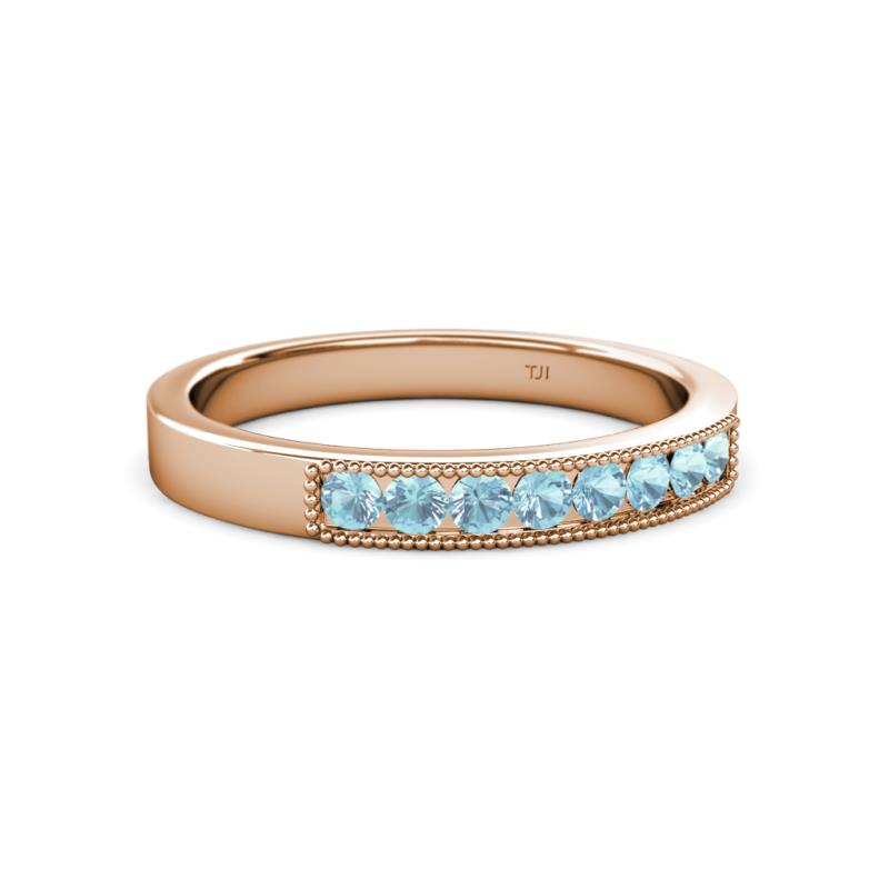 Aquamarine 8 Stone Channel set Milgrain Womens Wedding Band Stackable 0.46 ctw 18K Rose Gold More Details ...