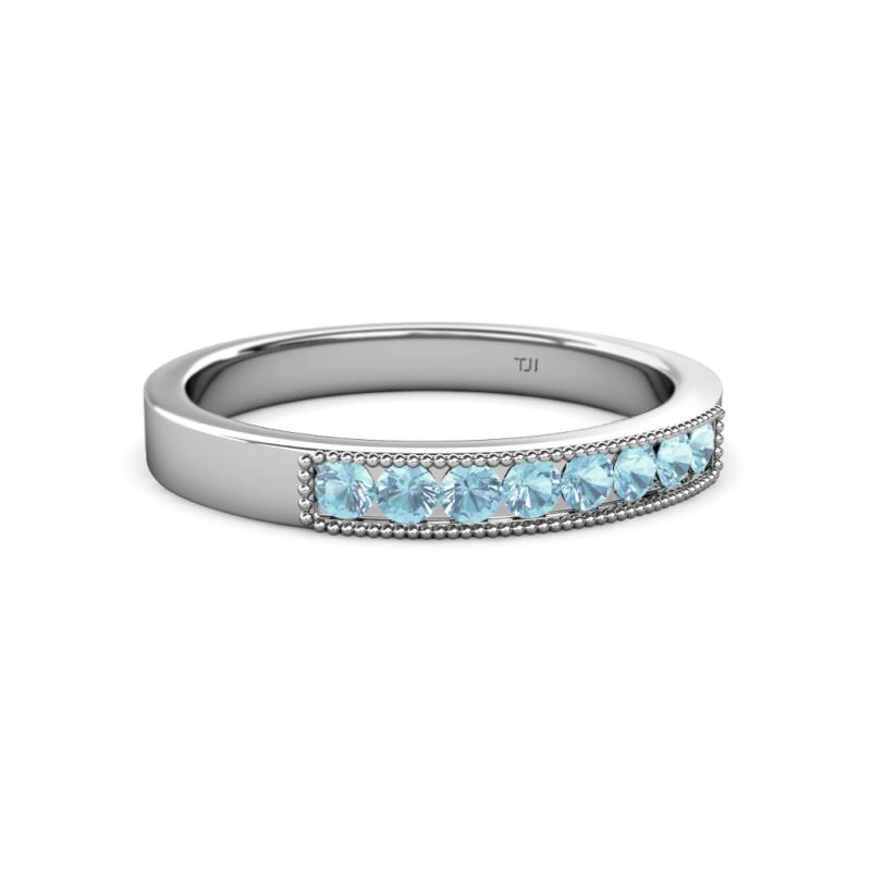 Aquamarine 8 Stone Channel set Milgrain Womens Wedding Band Stackable 0.46 ctw Platinum More Details ...