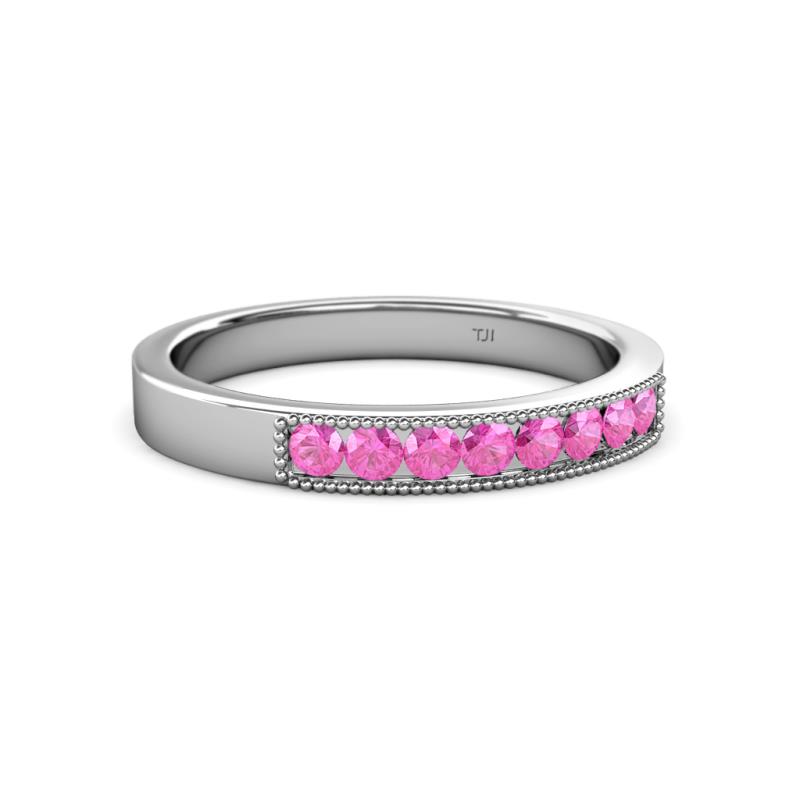 Pink Sapphire 8 Stone Channel set Milgrain Womens Wedding Band Stackable 0.42 ctw 14K White Gold More Details ...