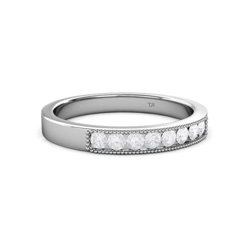 White Sapphire 8 Stone Channel set Milgrain Womens Wedding Band Stackable 0.42 ctw 18K White Gold More Details ...