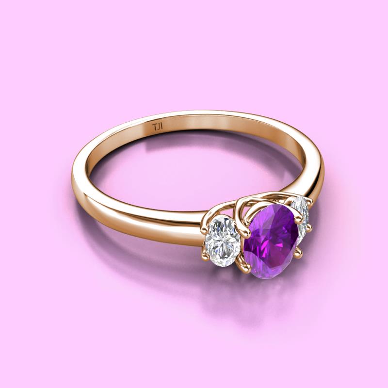 Oval Cut (7x5 mm) Amethyst and Lab Grown Diamond 1.22 ctw Trellis Three Stone Engagement Ring 18K Rose Gold More Details ...
