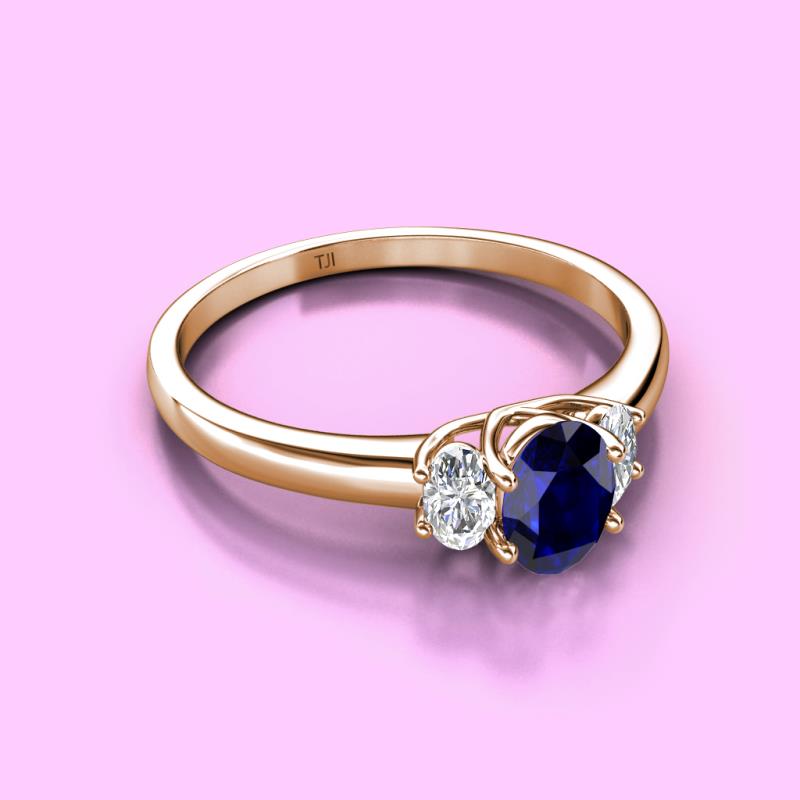 Get an Engagaement Ring that she has always been wishing for with Oval Blue Sapphire and Diamond combining together to form 3 Stones symbolising your past, present and future together and is surely to treasured.