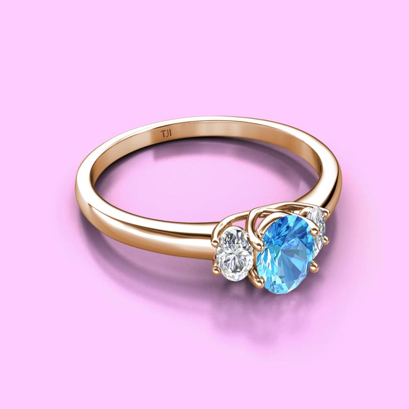 Get an Engagaement Ring that she has always been wishing for with Oval Blue Topaz and Diamond combining together to form 3 Stones symbolising your past, present and future together and is surely to treasured.
