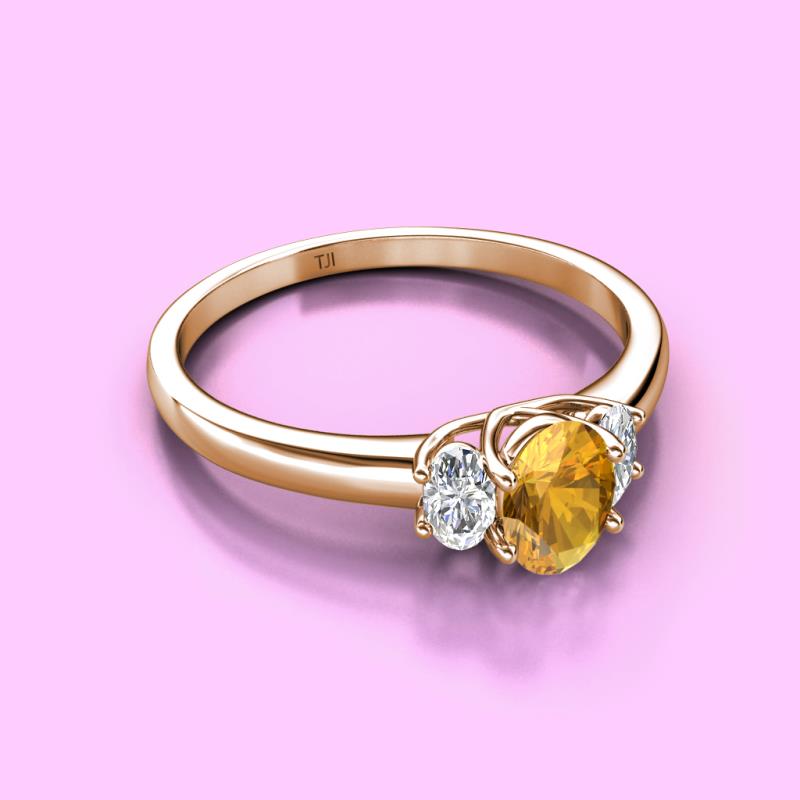 Oval Cut (7x5 mm) Citrine and Lab Grown Diamond 1.22 ctw Trellis Three Stone Engagement Ring 10K Rose Gold More Details ...