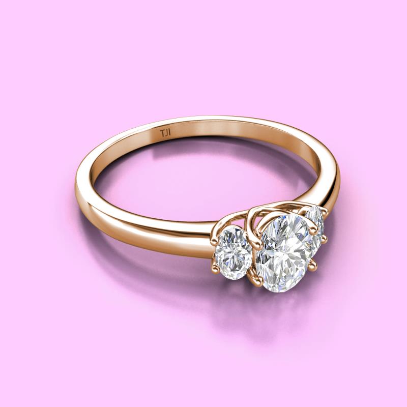 Oval Cut (7x5 mm) Diamond 1.44 ctw Trellis Three Stone Engagement Ring 10K Rose Gold More Details ...