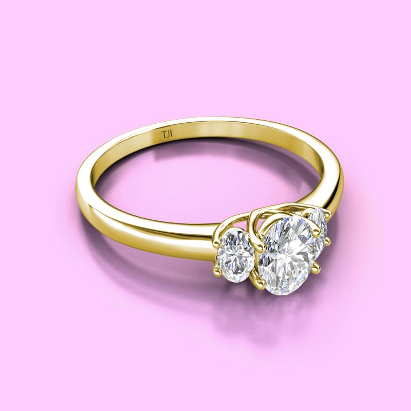 Oval Cut (7x5 mm) Lab Grown Diamond 1.30 ctw Trellis Three Stone Engagement Ring 14K Yellow Gold More Details ...