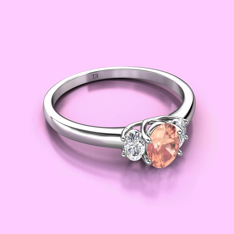 Get an Engagaement Ring that she has always been wishing for with Oval Morganite and Diamond combining together to form 3 Stones symbolising your past, present and future together and is surely to treasured.