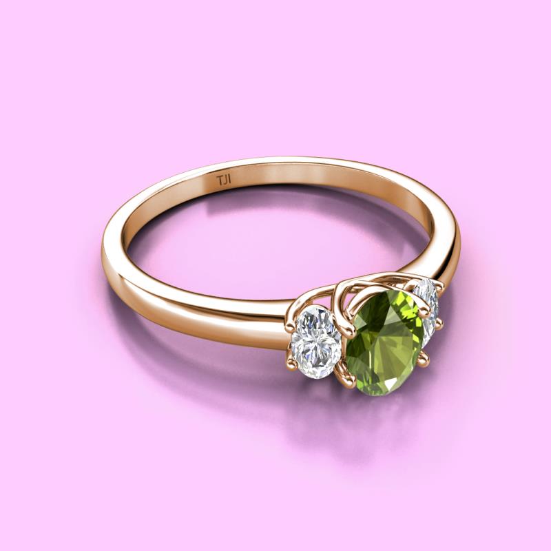 Oval Cut (7x5 mm) Peridot and Diamond 1.44 ctw Trellis Three Stone Engagement Ring 18K Rose Gold More Details ...