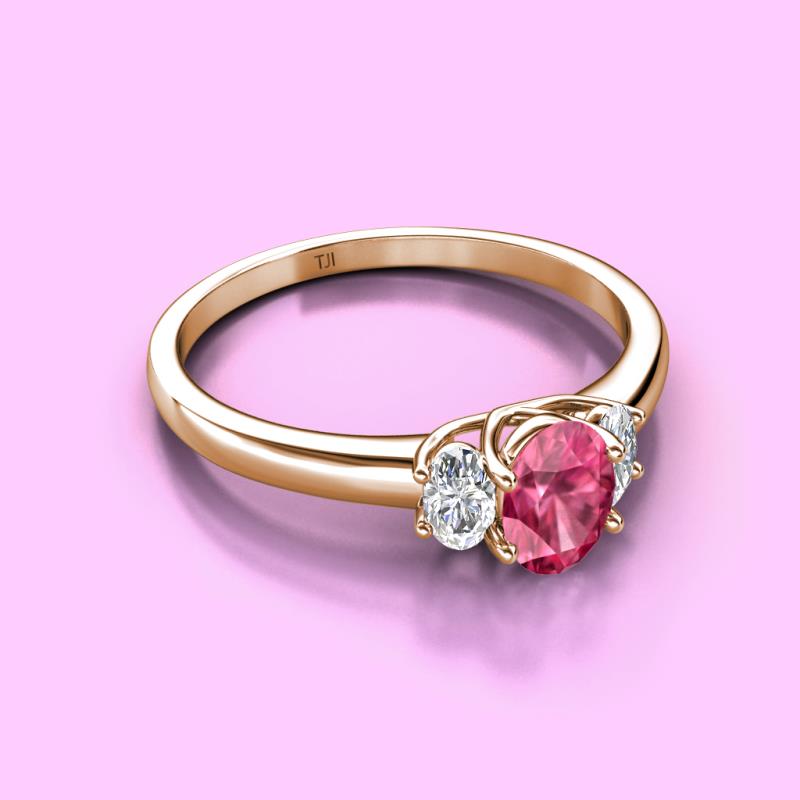 Oval Cut (7x5 mm) Pink Tourmaline and Diamond 1.24 ctw Trellis Three Stone Engagement Ring 18K Rose Gold More Details ...