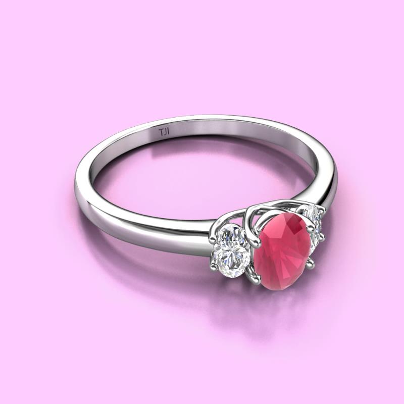 Get an Engagaement Ring that she has always been wishing for with Oval Rhodolite Garnet and Lab Grown Diamond combining together to form 3 Stones symbolising your past, present and future together and is surely to treasured.