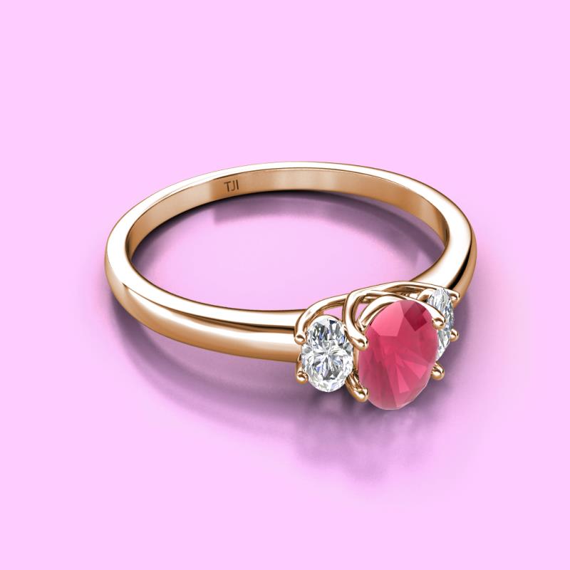 Oval Cut (7x5 mm) Rhodolite Garnet and Lab Grown Diamond 1.50 ctw Trellis Three Stone Engagement Ring 18K Rose Gold More Details ...