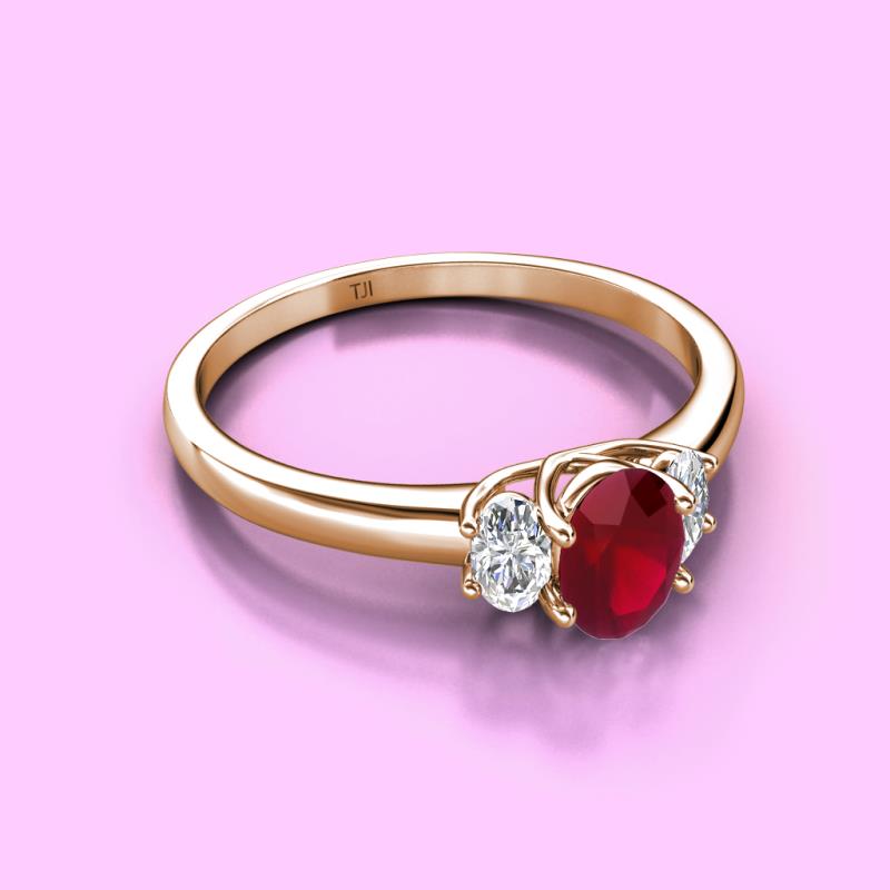 Get an Engagaement Ring that she has always been wishing for with Oval Ruby and Diamond combining together to form 3 Stones symbolising your past, present and future together and is surely to treasured.