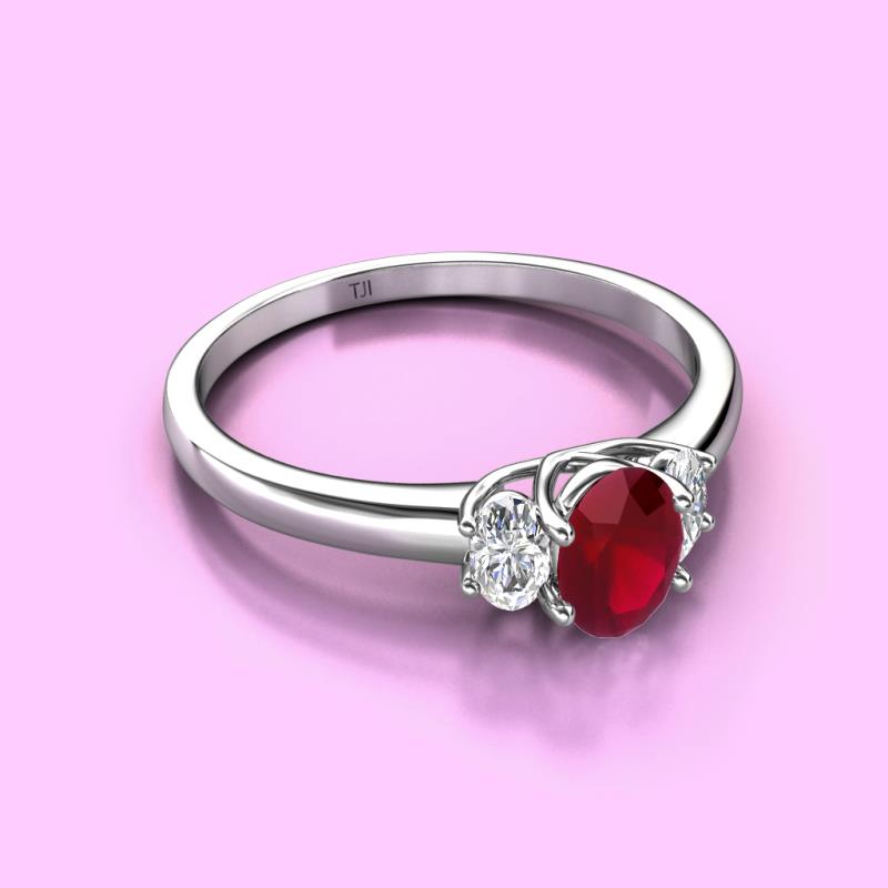 Oval Cut (7x5 mm) Ruby and Diamond 1.39 ctw Trellis Three Stone Engagement Ring 10K White Gold More Details ...