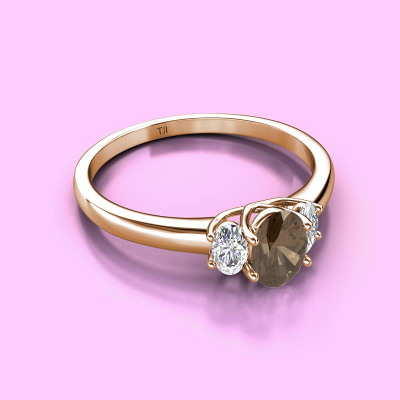 Get an Engagaement Ring that she has always been wishing for with Oval Smoky Quartz and Lab Grown Diamond combining together to form 3 Stones symbolising your past, present and future together and is surely to treasured.