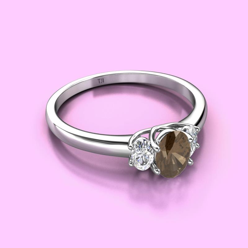 Get an Engagaement Ring that she has always been wishing for with Oval Smoky Quartz and Lab Grown Diamond combining together to form 3 Stones symbolising your past, present and future together and is surely to treasured.