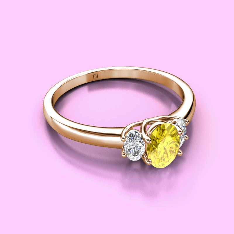 Oval Cut (7x5 mm) Yellow Sapphire and Diamond 1.40 ctw Trellis Three Stone Engagement Ring 18K Rose Gold More Details ...