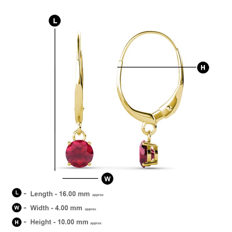 Ruby 1/2 ctw Four Prong Womens Solitaire Drop and Dangle Earrings 14K Yellow Gold More Details ...