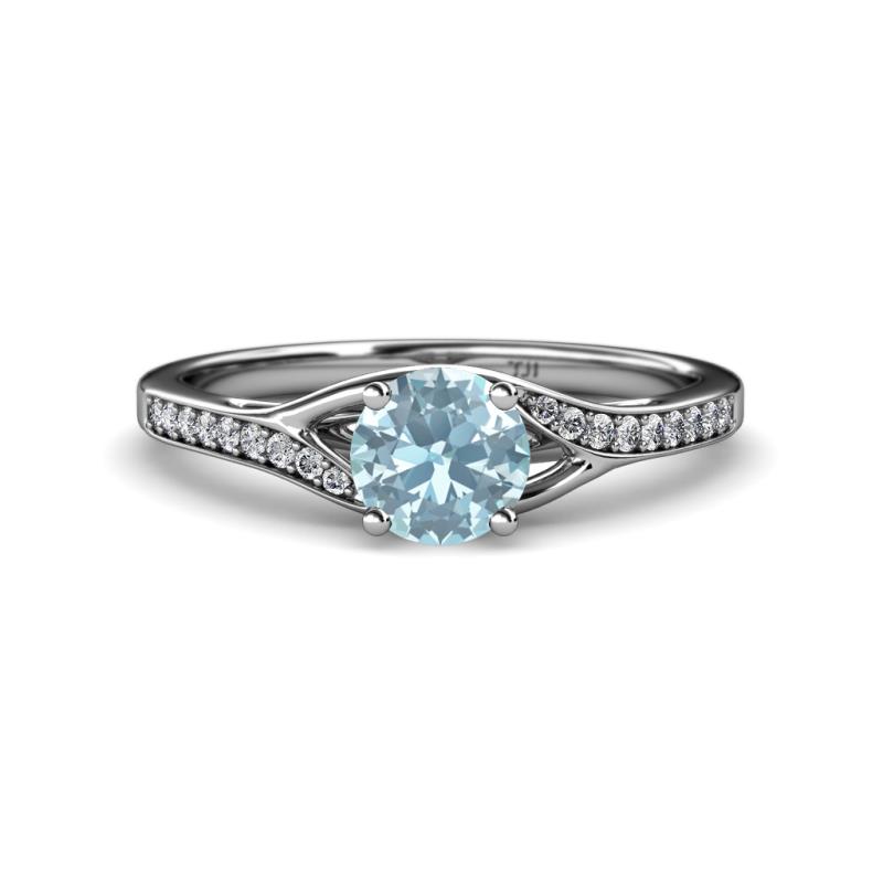 7/8 ctw Round Aquamarine and Diamond Bypass Womens Engagement Ring 14K White Gold More Details ...