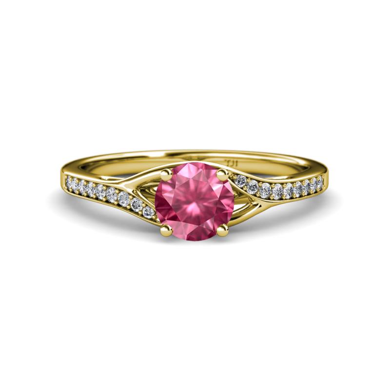7/8 ctw Round Pink Tourmaline and Diamond Bypass Womens Engagement Ring 18K Yellow Gold More Details ...
