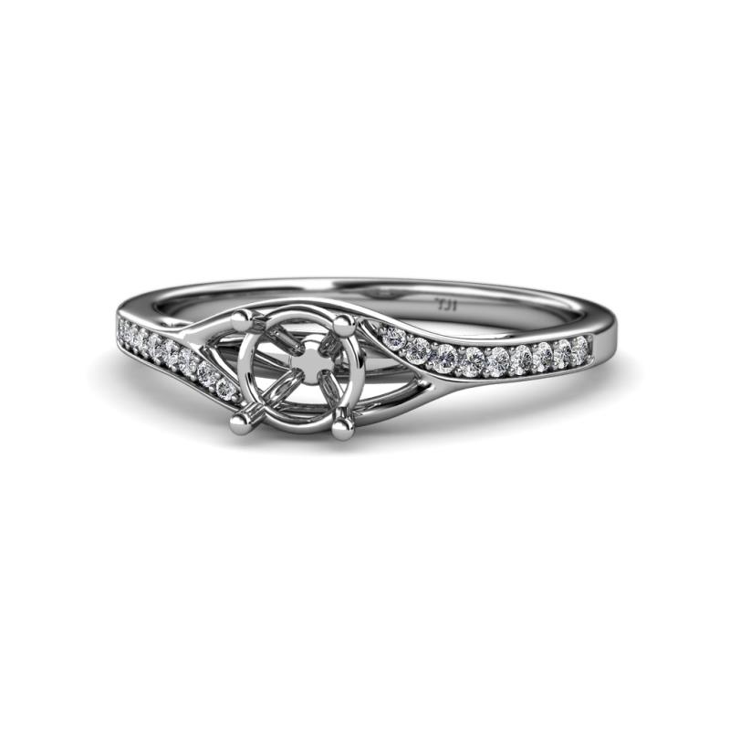 This Facinating Semi Mount Engagement Ring has 4 Prong Head with crossover undergallery and single row graduated Pave Set Diamonds bypass shank making it a wonderful addition to your Jewelry Collection.