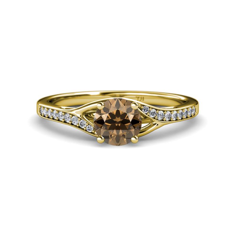 1 ctw Round Smoky Quartz and Diamond Bypass Womens Engagement Ring 18K Yellow Gold More Details ...