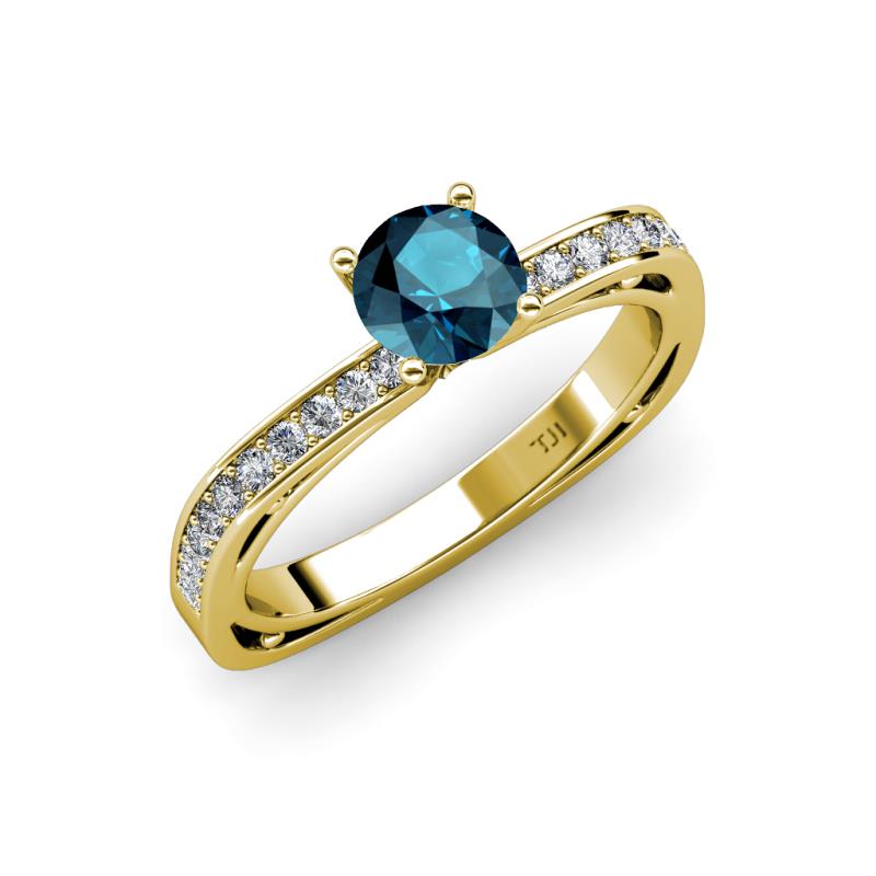 Blue and White Diamond Euro Shank Womens Engagement Ring 1.00 ctw 14K Yellow Gold More Details ...