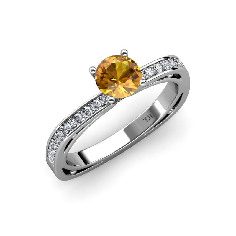 Classic and elegant, this 0.97 cttw Engagement Ring offers a unique twist on tradition which Centers Citrine and small round diamonds flank the Euro Shank design adorning the graceful shank making it an ideal choice for a loving proposal.