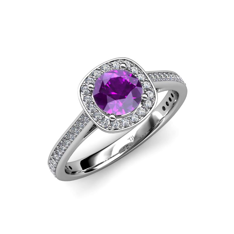 Amethyst and Diamond Womens Halo Engagement Ring 1.07 ctw 14K White Gold More Details ...