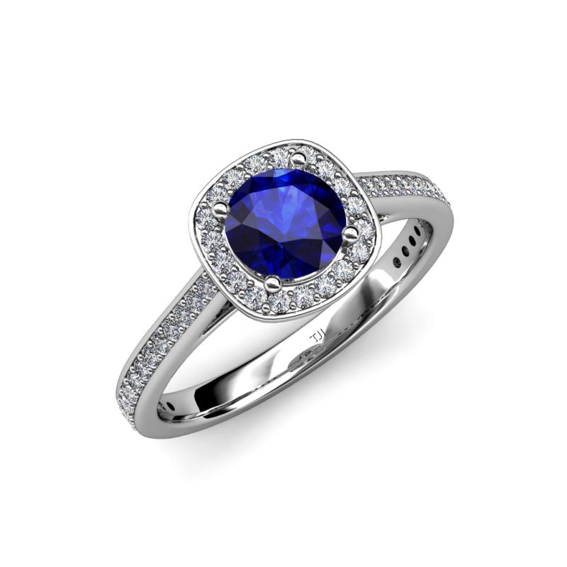 Blue Sapphire and Diamond Womens Halo Engagement Ring 1.15 ctw 14K White Gold More Details ...