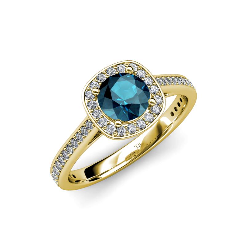 Blue and White Diamond Womens Halo Engagement Ring 1.20 ctw 14K Yellow Gold More Details ...