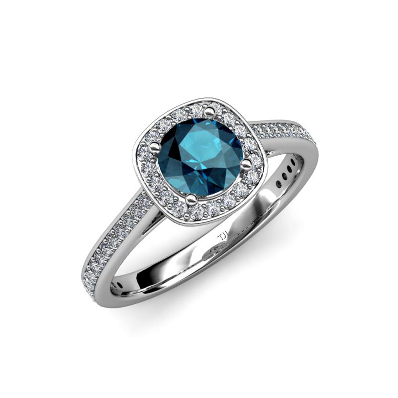 Blue and White Diamond Womens Halo Engagement Ring 1.20 ctw Platinum More Details ...