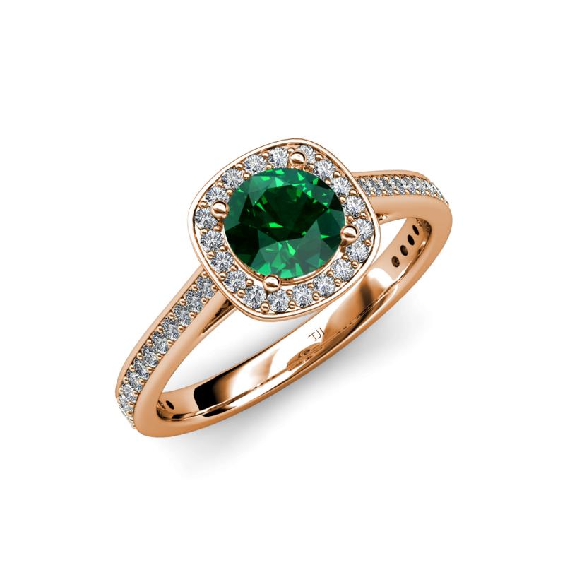 Emerald and Diamond Womens Halo Engagement Ring 0.92 ctw 18K Rose Gold More Details ...