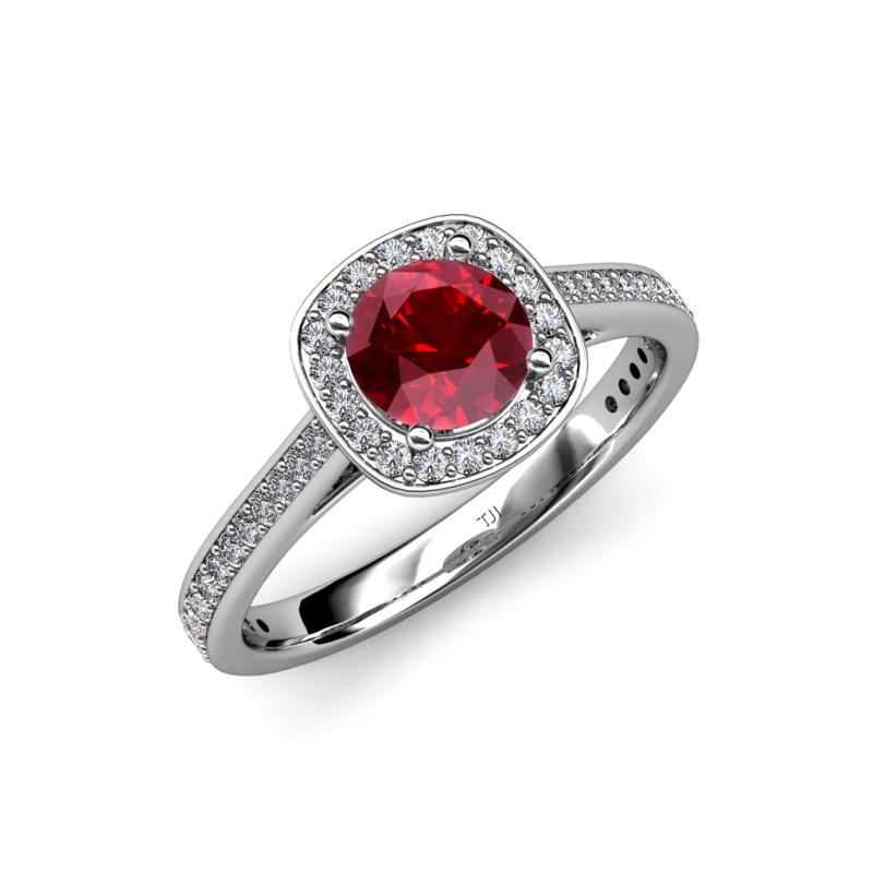Ruby and Diamond Womens Halo Engagement Ring 1.15 ctw 18K White Gold More Details ...