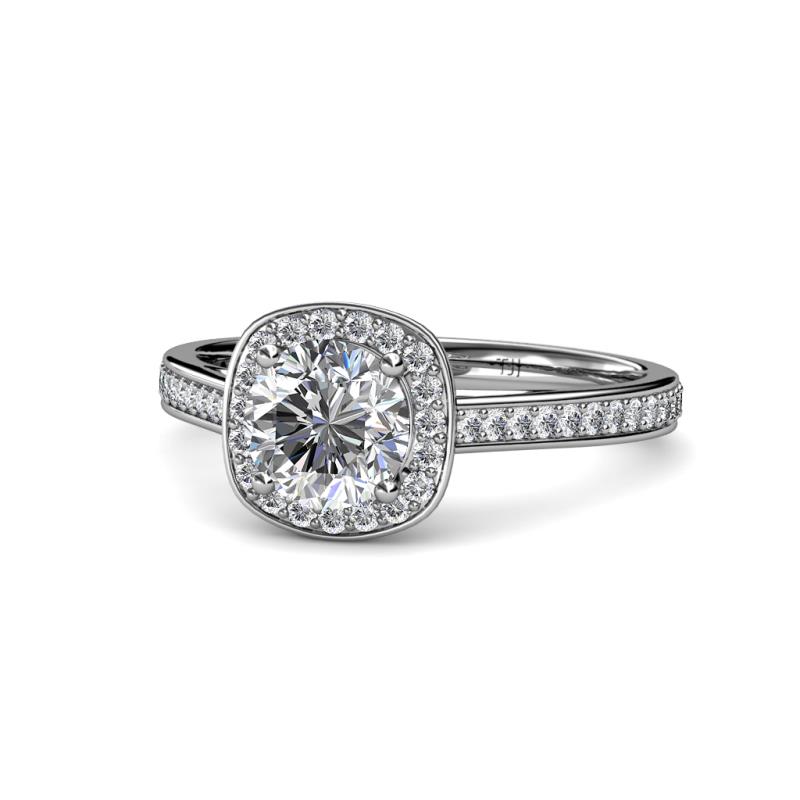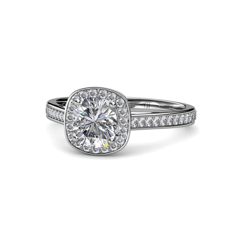 A Halo Cushion Frame of shimmering Round Diamonds with additional Diamonds line the Ring's shank which gives a grace to the Semi Mount Ring making it a brilliant circle of Love.