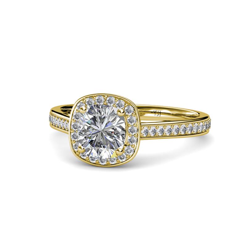 A Halo Cushion Frame of shimmering Round Diamonds with additional Diamonds line the Ring's shank which gives a grace to the Semi Mount Ring making it a brilliant circle of Love.