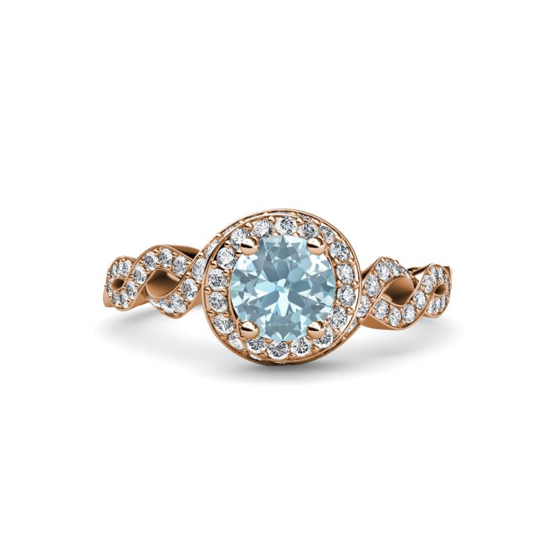 1 3/8 ctw Round Aquamarine and Diamond Twisted Womens Halo Engagement Ring 14K Rose Gold More Details ...