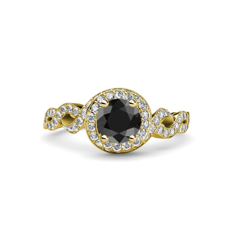 1 1/2 ctw Round Black and White Diamond Twisted Womens Halo Engagement Ring 18K Yellow Gold More Details ...