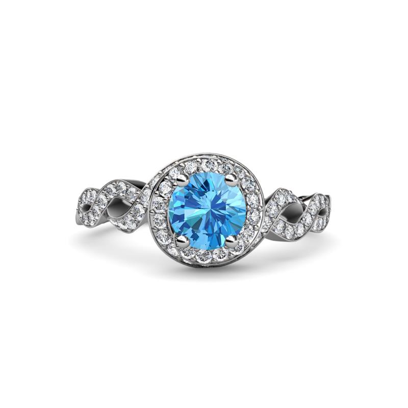 1 1/2 ctw Round Blue Topaz and Diamond Twisted Womens Halo Engagement Ring 18K White Gold More Details ...