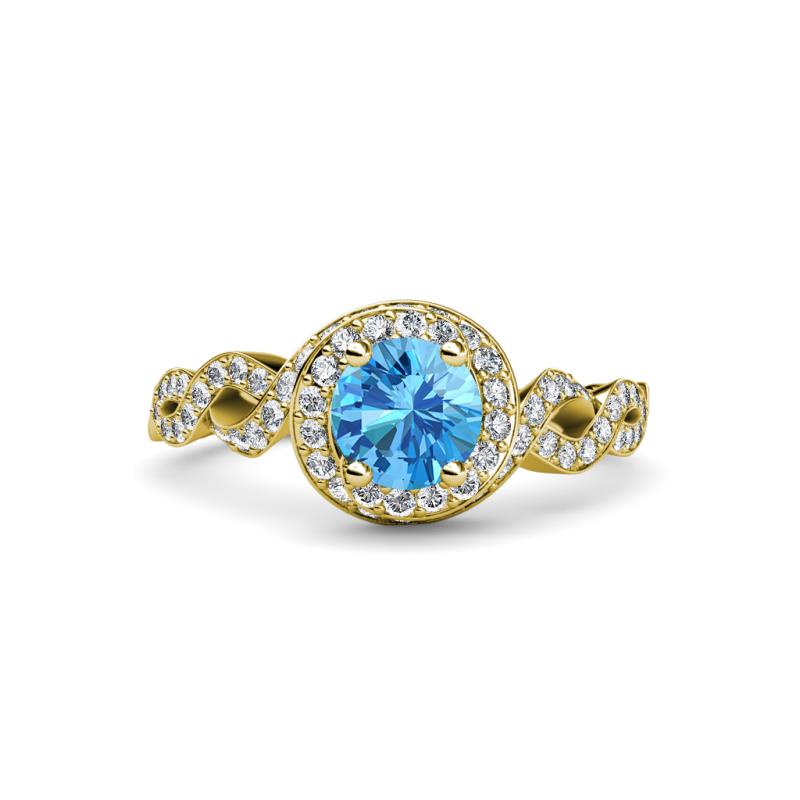 1 1/2 ctw Round Blue Topaz and Diamond Twisted Womens Halo Engagement Ring 18K Yellow Gold More Details ...