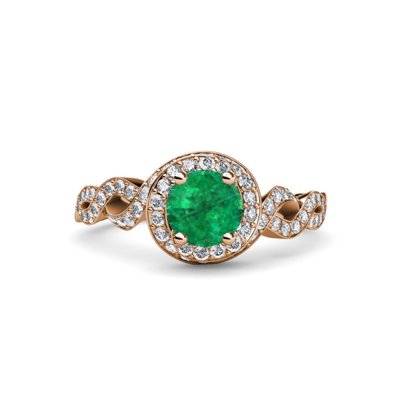 1 1/4 ctw Round Emerald and Diamond Twisted Womens Halo Engagement Ring 18K Rose Gold More Details ...
