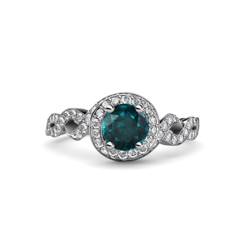 1 1/2 ctw Round London Blue Topaz and Diamond Twisted Womens Halo Engagement Ring 14K White Gold More Details ...
