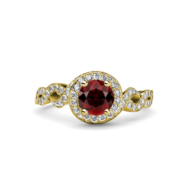 1 5/8 ctw Round Red Garnet and Diamond Twisted Womens Halo Engagement Ring 14K Yellow Gold More Details ...