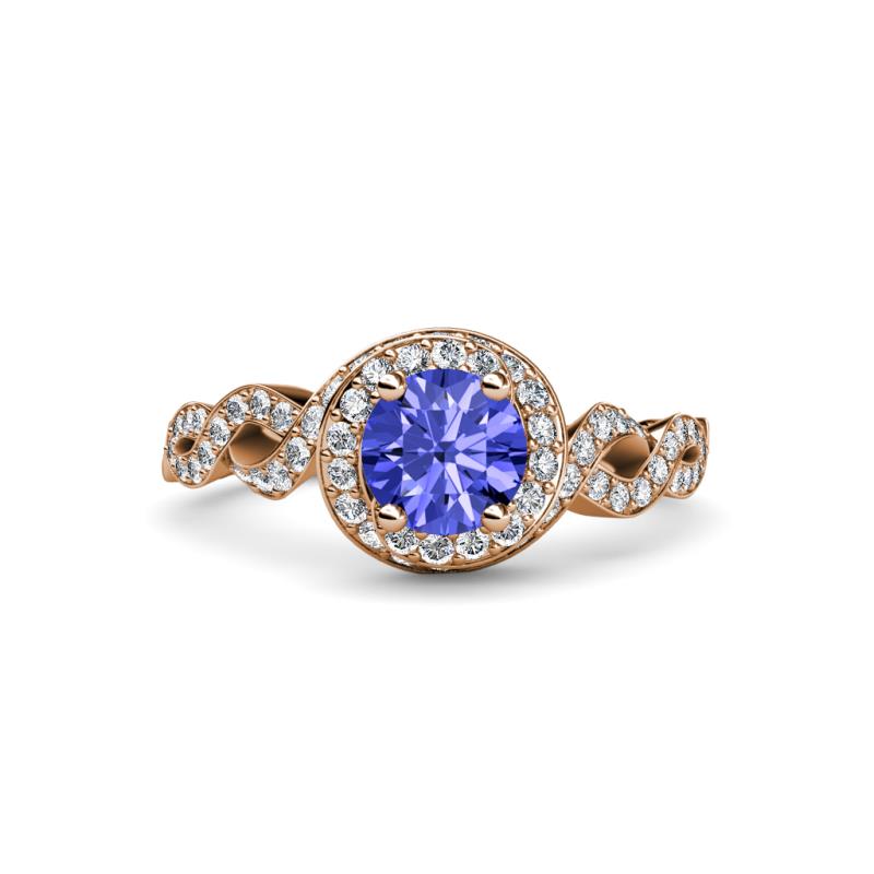 1 1/2 ctw Round Tanzanite and Diamond Twisted Womens Halo Engagement Ring 14K Rose Gold More Details ...