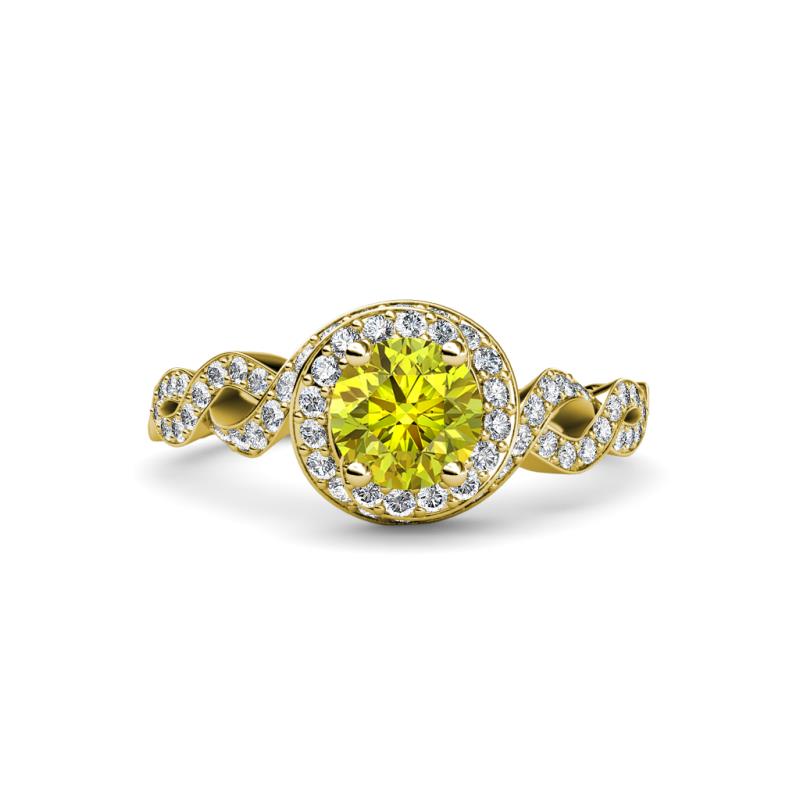 1 1/2 ctw Round Yellow and White Diamond Twisted Womens Halo Engagement Ring 14K Yellow Gold More Details ...