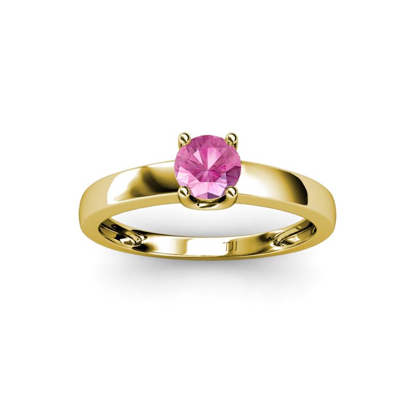 Lab Created Pink Sapphire U-Prong Womens Solitaire Engagement Ring 0.55 ct 14K Yellow Gold More Details ...